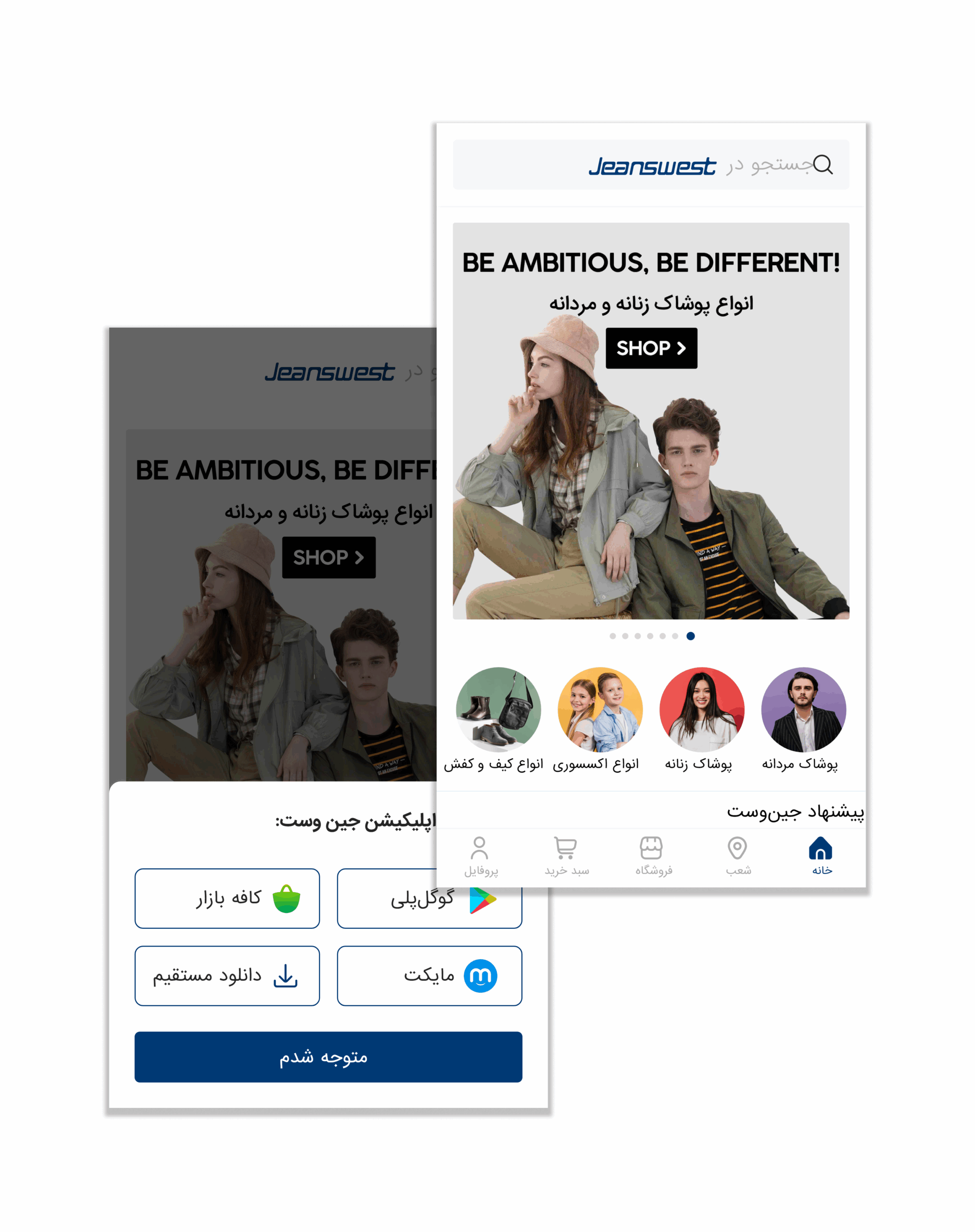 با دانلود اپلیکیشن، جین وست نزدیکتر به توست. امتیازات عضویت خود را مشاهده و خریدی لذتبخش را تجربه کنید.