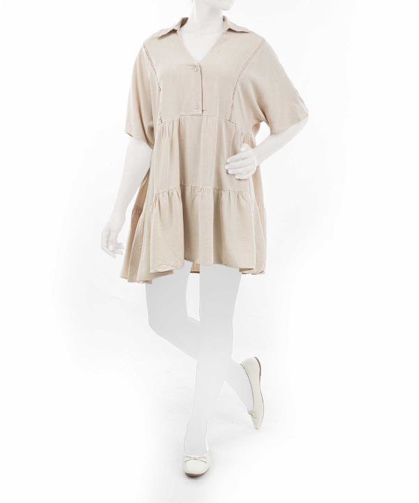 - سایر توضیحات: مدل با قد 165 سانتیمتر و وزن 52 کیلوگرم و سایز L پوشیده است، جنس پارچه 70% ریون، 30% لینن